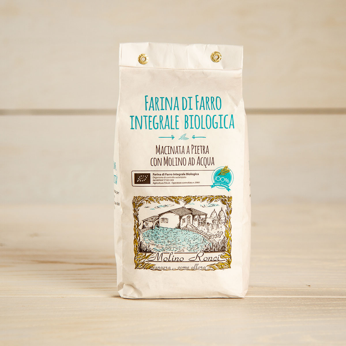 Le sue caratteristiche principali sono un elevato contenuto di fibra, vitamine e Sali minerali ed è povero di grassi. Può essere utilizzato per la preparazione di pane, piadina, pizza, pasta ed altro. Macinato a pietra. Il farro è un grano italiano di derivazione biologica.